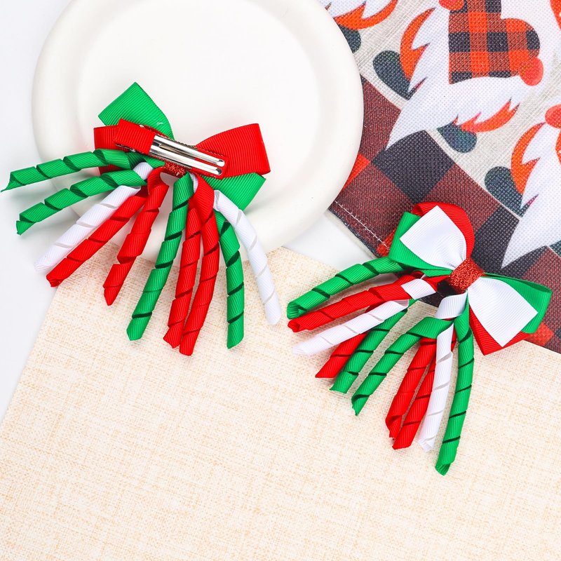 Christmas Curly Ribbon Alligator Barrettes Hairpins
