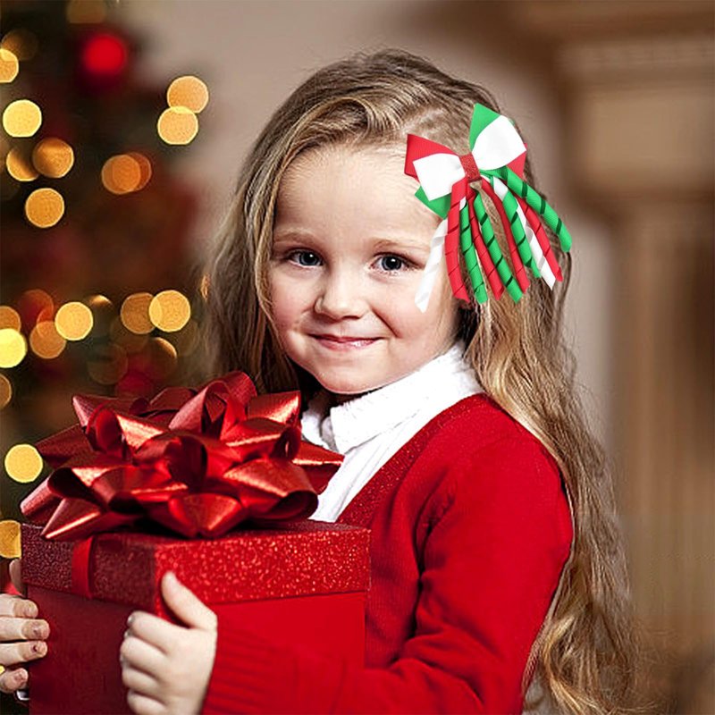Christmas Hair Bow Clips for Girls and Women 3 Inch Curly Ribbon Hair Clips Red White Green Korker Curly Alligator Barrette Xmas Bowknot Handmade Cheer Hair Accessories for Christmas Party 2Packs