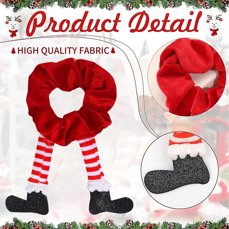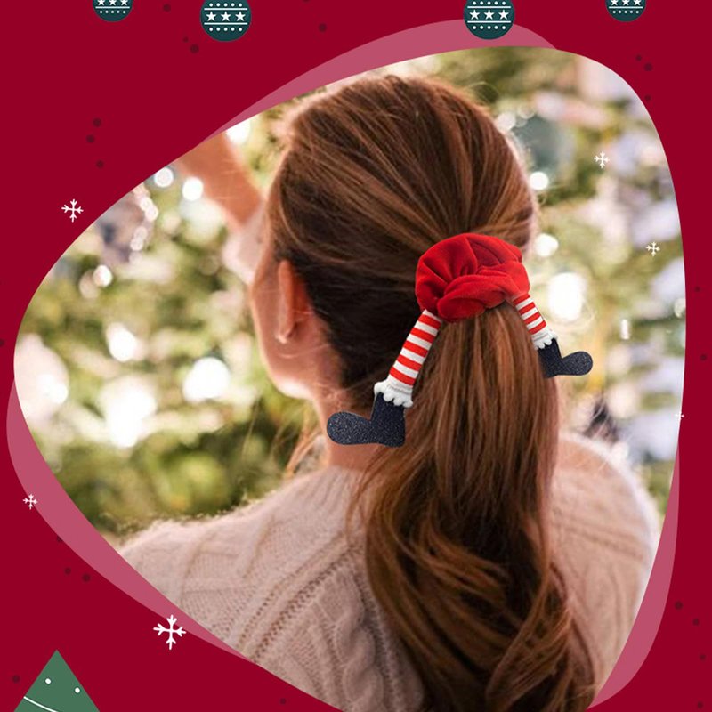 Christmas Hair Scrunchies for Women Girls Hair Ties Christmas Velvet Cartoon Legs Elastic Hair Bands for Kids Ponytail Ties Rope Rubber Bands Ties Hair Accessoires (Red, 1Pack)