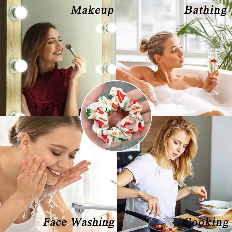 Christmas Hair Ties Elastics Lattice Snowflakes Hair Scrunchies Ponytail Holder Christmas Tree Santa Claus Hair Accessories for Women Girls Silk Hair Band Ropes Festival Party Supplies