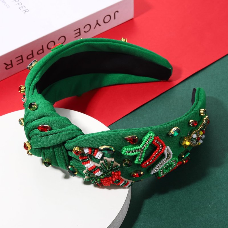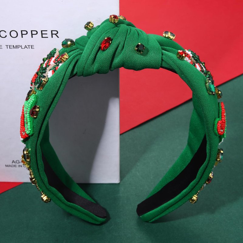 - Christmas Headband for Women: Do you want to buy a hair accessory for your Xmas celebration activity? Here is a fun & unique Christmas jeweled hair hoop accessories for you. features green plaid knot headband decorate with Santa Claus charms and sparkle Christmas themed red green rhinestone crystal beads, perfect for Christmas party use. You will be special and eyes-catching. Make the party ambience be cheerful. So don't hesitate and come to buy one! You will not regret it if you buy it!