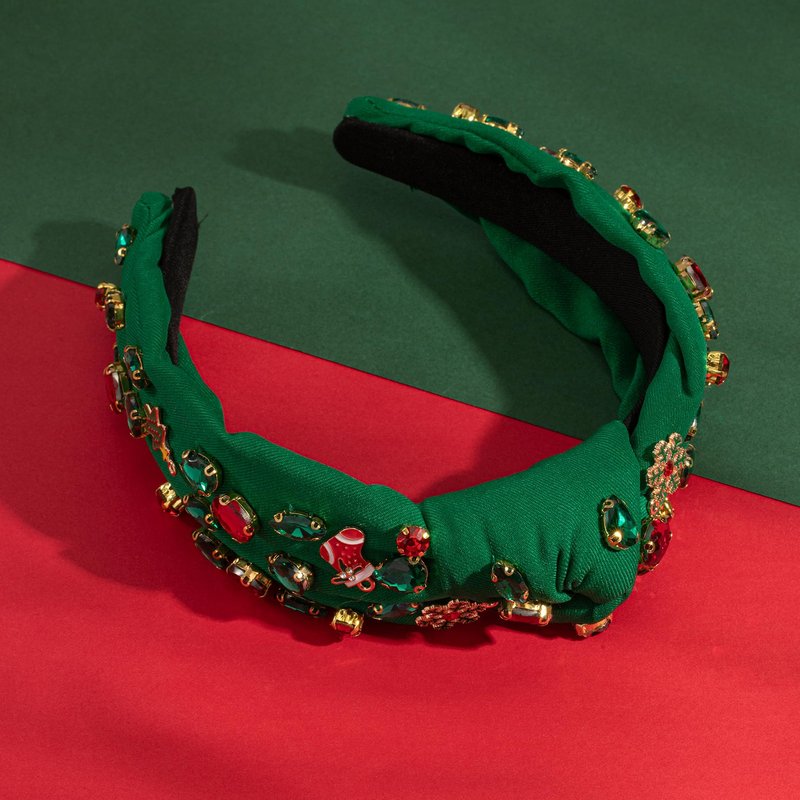 Christmas Jeweled Headband for Women Red Green Crystal Xmas Tree Snowflake Embellished Knotted Hairband ladies Twist Wide Green Hair Band Accessories Fashion Holiday Hairband Gifts (Christmas-Green)