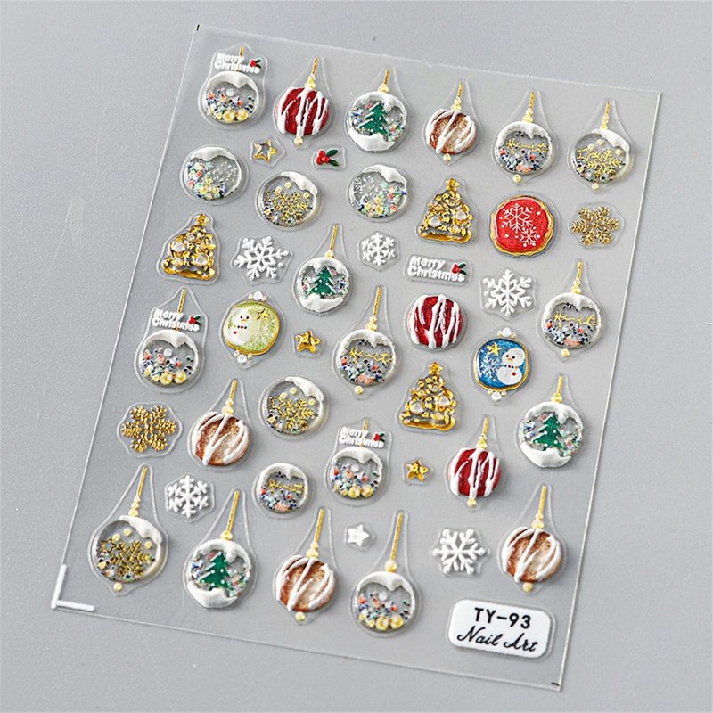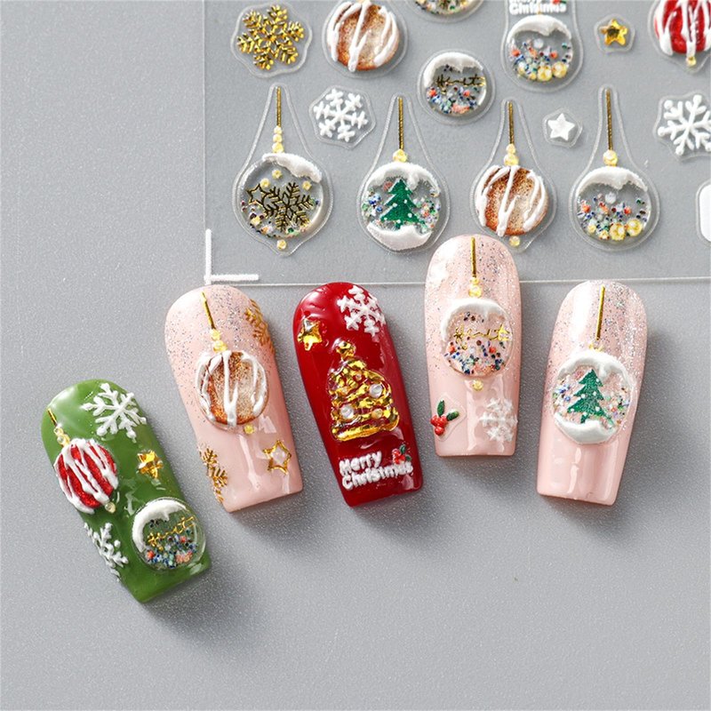 - Christmas Designs: Each set includes 1 sheet of beautifully designed 5D self-adhesive nail decals featuring a variety of Christmas and winter-themed patterns, including snowflakes, Christmas trees, ornaments, and more, perfect for creating festive nail art for the holiday season.