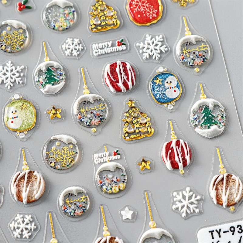 - 5D Embossed Designs: This single sheet features a delightful collection of 5D embossed nail decals, including fun and festive designs such as snowmen, snowflakes, cartoon Santa Claus, and playful elk, adding a unique and dimensional look to your holiday nail art.
