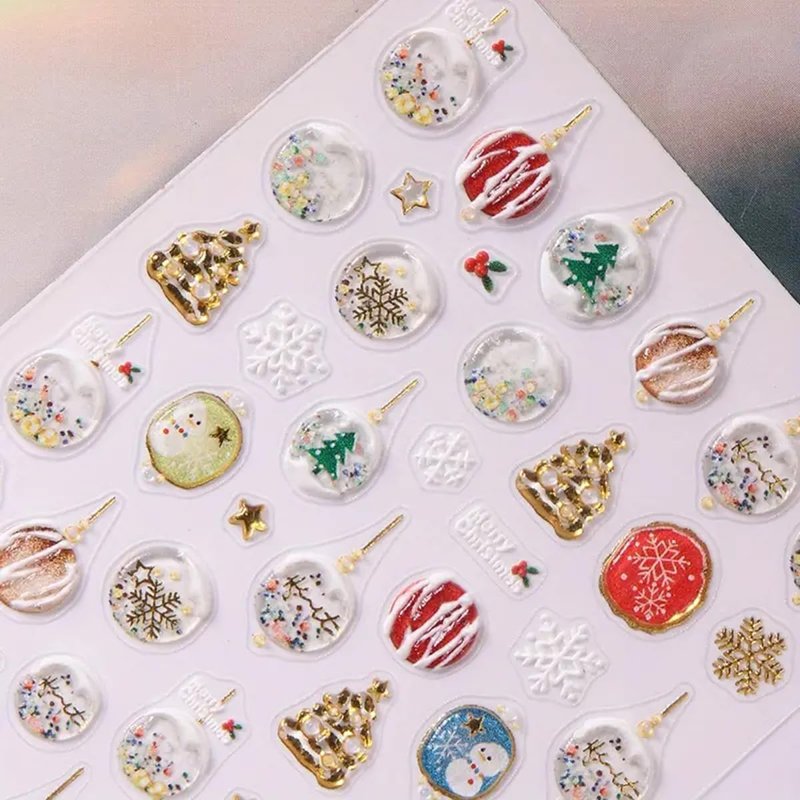 - Christmas Nail Stickers Set: You will get 1 sheet of colorful winter snowflake crystal ball acrylic engraved nail stickers, that will not fade, are more realistic than ordinary stickers, and you can well create a more detailed and delicate nail art effect.