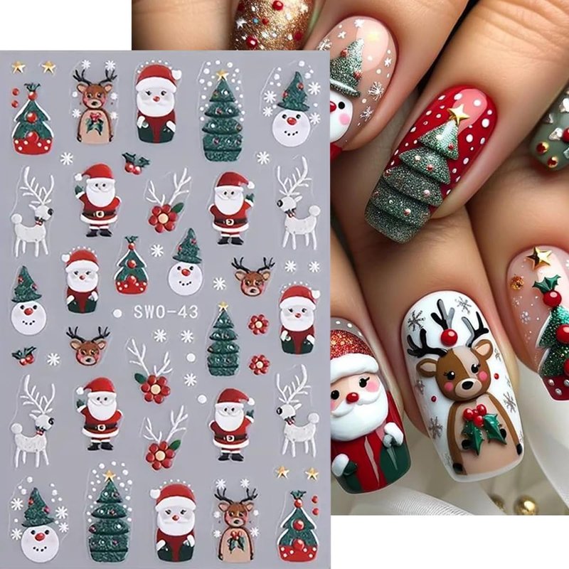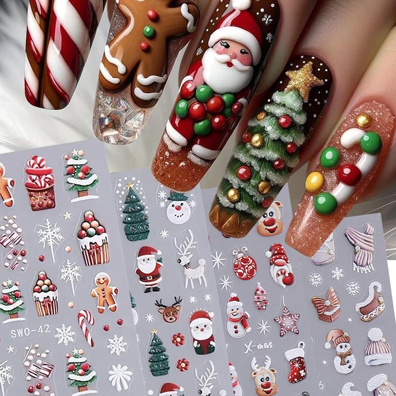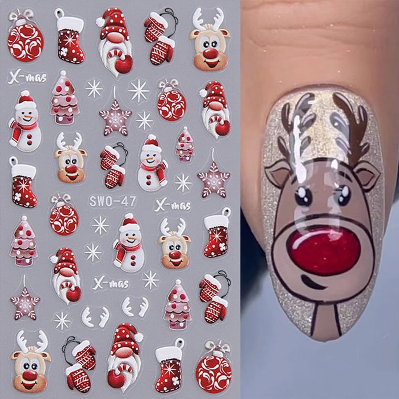 - Easy to Use: 5D Xmas nail stickers are self-adhesive designs, make it sticking well on your nail. Just use tweezers to peel and stick it on your nail. You can also apply a top coat to make the stickers last longer.