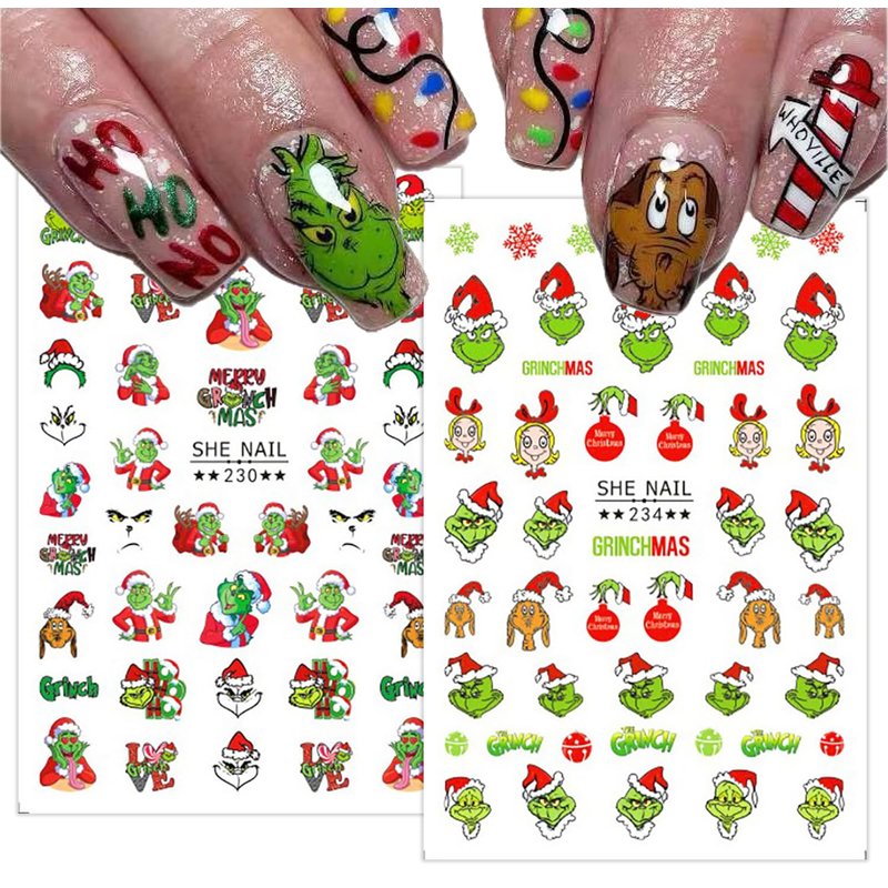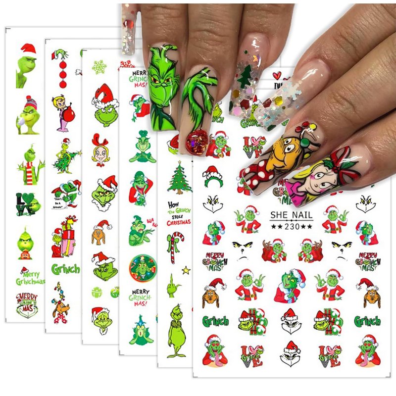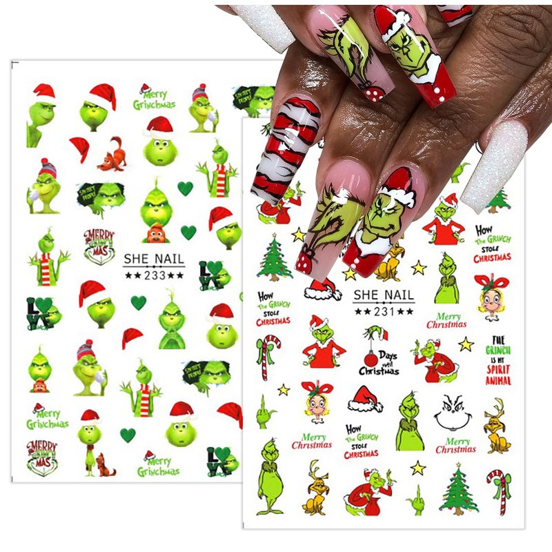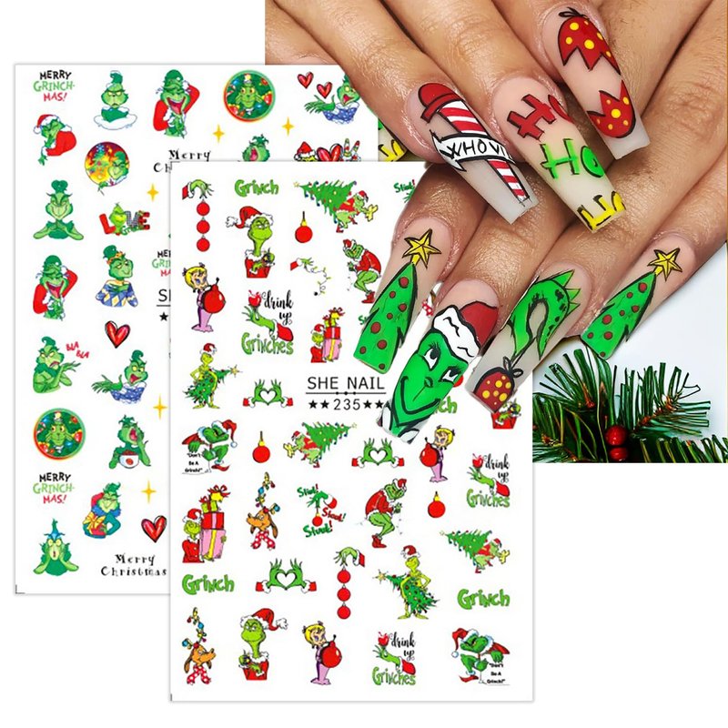 - Fun and Festive Designs: Featuring funny cartoon Grinchs, Xmas trees, and Santa Claus designs, our 3D self-adhesive nail decals add a touch of charm and holiday spirit to your manicure, making your nails stand out at any Christmas party or event.