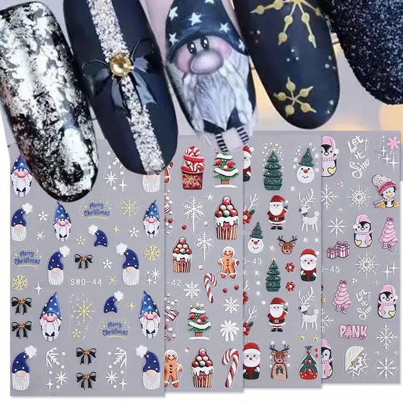 - Package Include: 4sheets of Christmas stickers for nails are the perfect fashion accessories. Large number of different patterns for you to use and replace in daily life, nail decals are full of sensuality and elegance, Various charming patterns bring you a different mood.