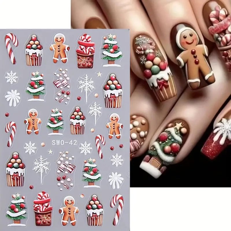 - Easy to Use: 3D Xmas nail stickers are self-adhesive designs, make it sticking well on your nail. Just use tweezers to peel and stick it on your nail. You can also apply a top coat to make the stickers last longer.