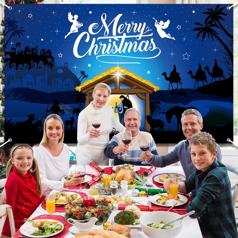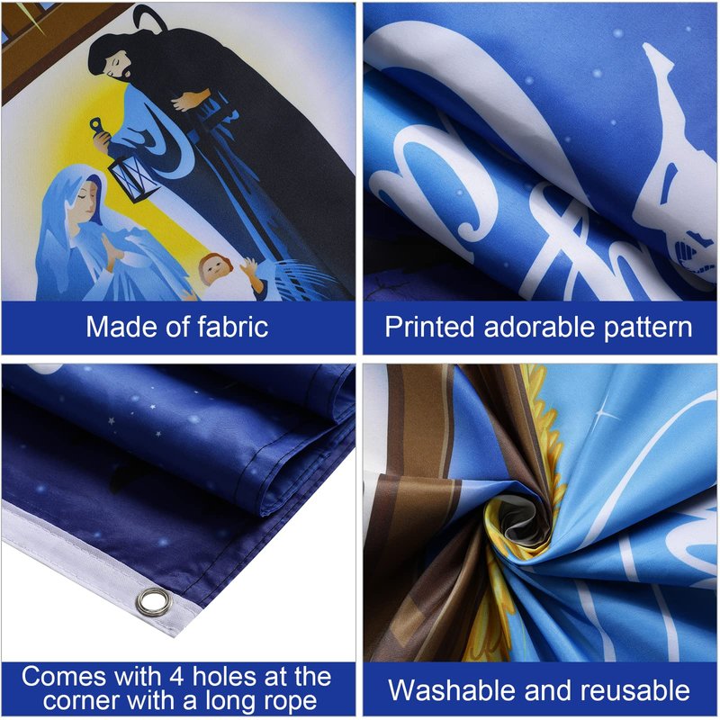 - Premium Material: The nativity Christmas background backdrop is made of thick polyester fabric with colorful prints. The nativity Christmas banner is clear and clean, weather-resistant and tear-resistant, without chemical odor, and suitable for indoor and outdoor use.