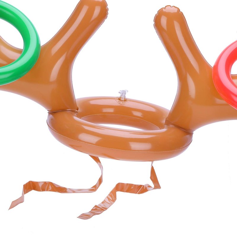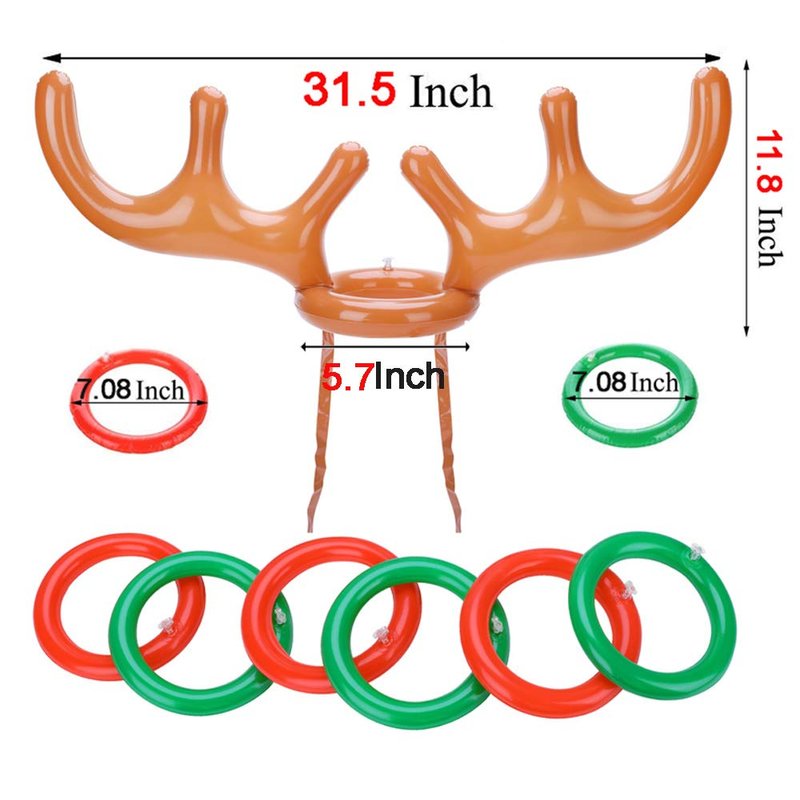 - 【PERFECT REINDEER GAMES GIFT FOR KIDS】One Size Fit All for Fun. Reindeer Antler Hats size:30*80cm/11.8*31.5inch,elk wearing size: 14.5cm/5.7inch, Rings size:18cm/7.08inch (Inflated Size), Perfect for Christmas Holiday Party Favors, School Day, Indoor and Outdoor Toss gaming. Share this fun winter with your family and friends.Add fun to your Christmas party with this inflatable ring toss game