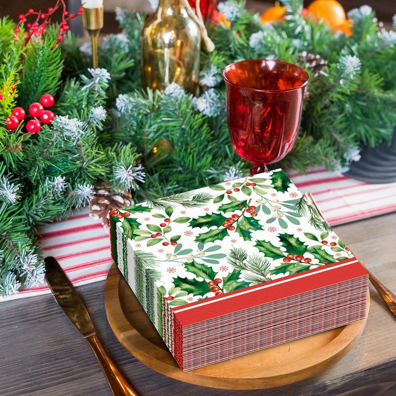 Christmas Party Supplies, Paper Napkins Disposable Luncheon Napkins Party Napkins for Merry Christmas Holly Jolly Christmas Holly Mistletoe Winter Holiday Party Decorations, 3 PLY, 50 Count
