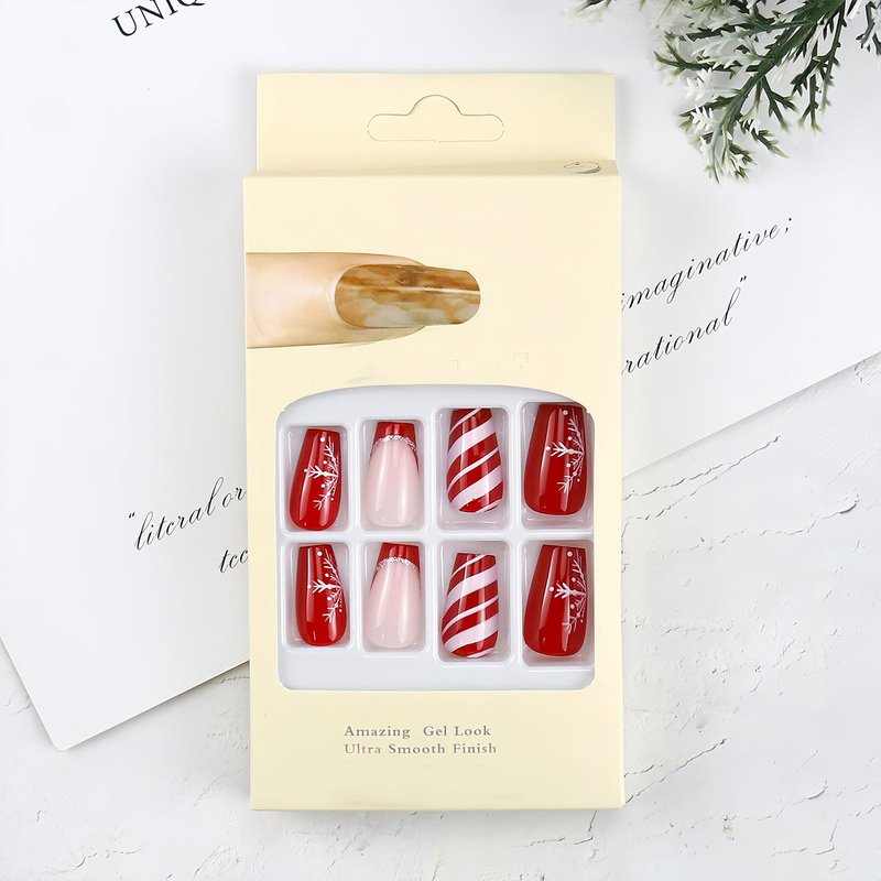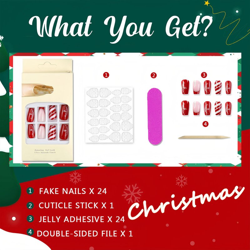 - Medium-Length Coffin Shape: The elegant coffin shape adds a modern, chic touch to your nails, making it a stylish choice for any occasion during the holiday season