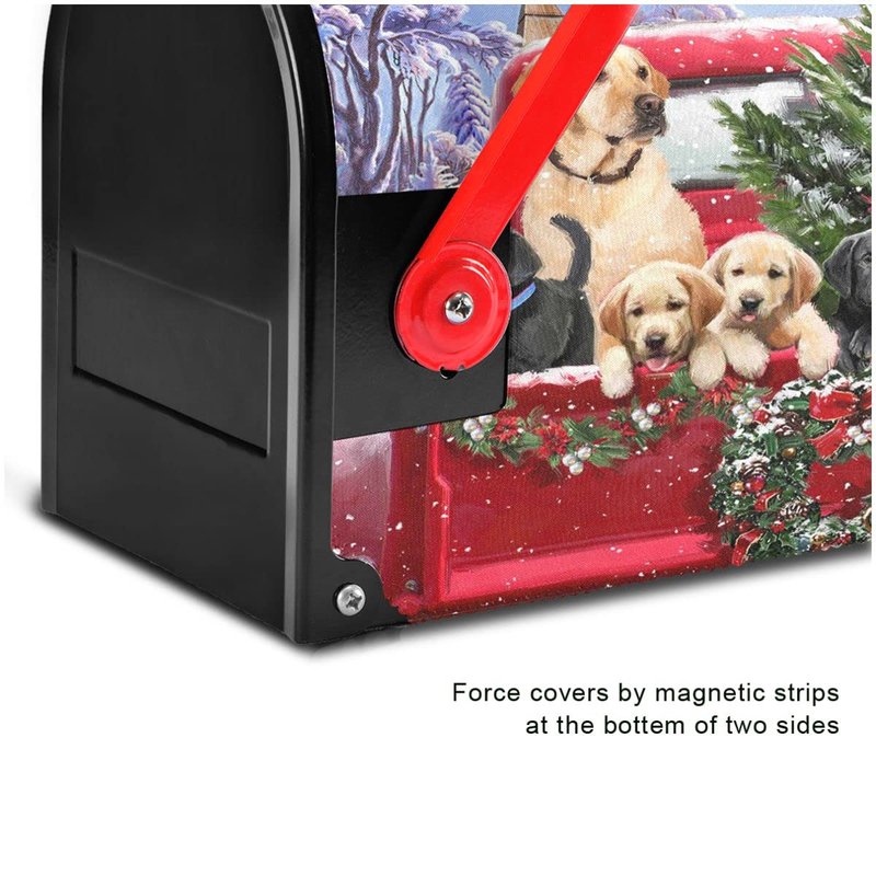 Christmas Red Truck Golden Retriever Dog Magnetic Mailbox Cover Standard 21 X 18 in Winter Snowflake Xmas Tree Snowman Mail Box Covers Decals Wraps Post Box Outdoor Decorations