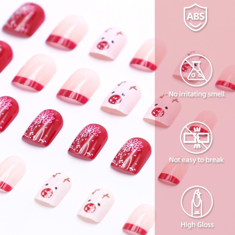 - 🎄【High-Quality Material】:Square French press on nails is made of high-quality ABS environmental friendly acrylic material. It is non-toxic, odorless, durable and not easy to fade. It is harmless to your body and nails, and provides you with a comfortable and wonderful experience.