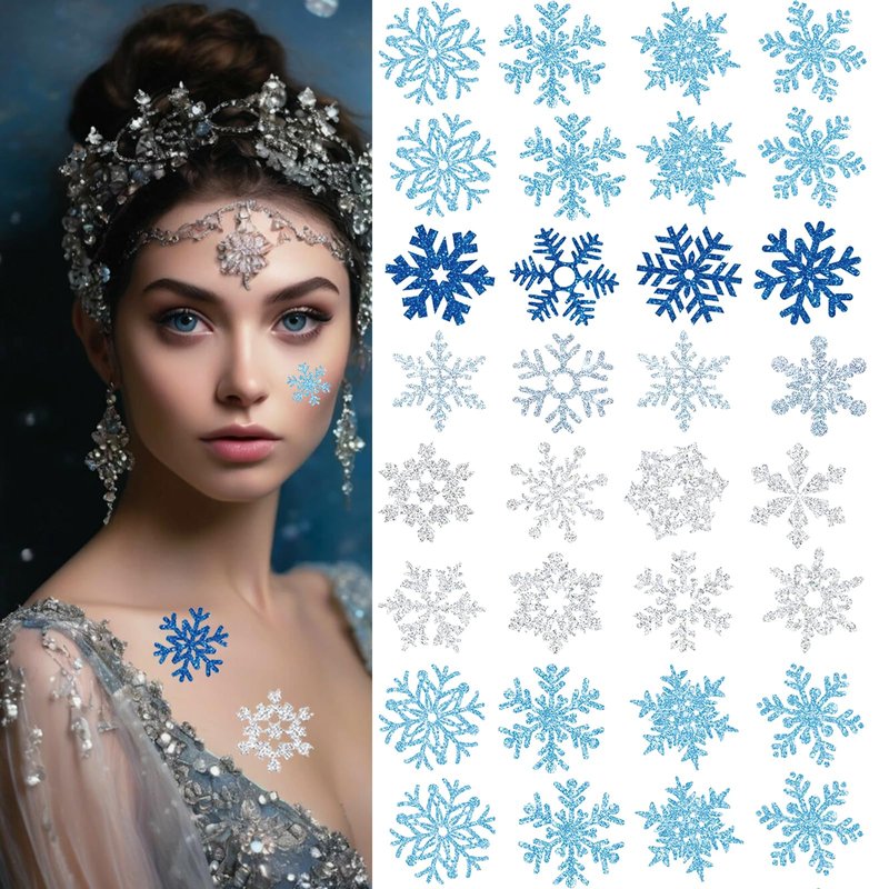 Christmas Snowflake Glitter Temporary Tattoos Sticker Winte Cute Apparel Accessories for Body Face Sleeve Women Men Party Favors Makeup DIY Flash Art Sticker