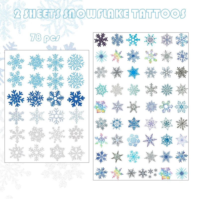 Christmas Snowflake Temporary Tattoos Stickers Winter Snow Flakes Glitter Tattoos Apparel Accessories for Adults Kids Christmas Holiday Party Favors Costume Body Face Decorations Supplies 78 Pcs