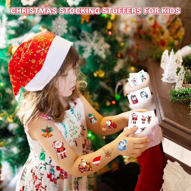 • [Christmas Stocking Stuffers for Kids]: Are you looking for Christmas Stocking Stuffers for Kids? Christmas temporary tattoos for kids boys girls is good choice! You will get 36 sheets / 144pcs kids Christmas tattoos in bulk. Bulk Christmas party supplies for kids stocking stuffers goody bag stuffers.