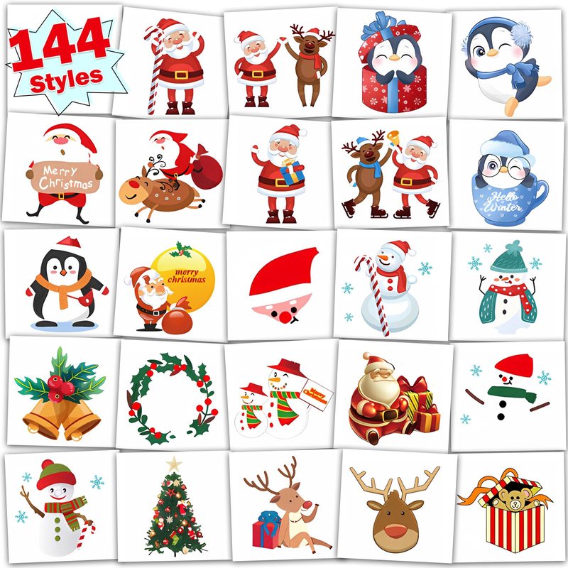 Christmas Temporary Tattoos for Kids Stocking Stuffers, 144 pcs Christmas Decorations Tattoos Stickers for Boys and Girls, Xmas Tattoos for Christmas Party Favor Xmas Gift Bags Stuffers