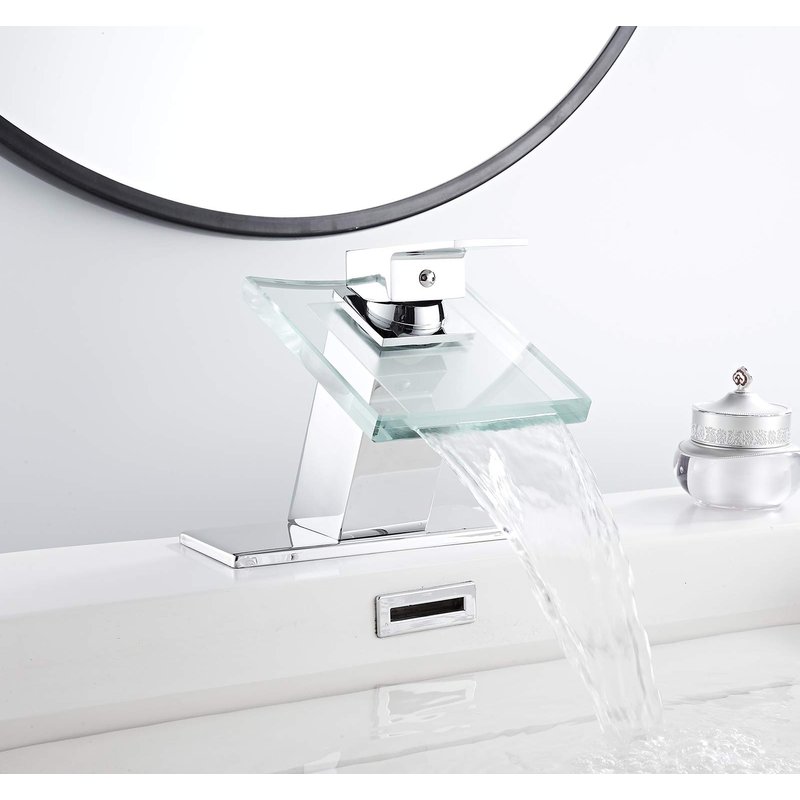 - Waterfall bathroom faucet provides a clear and steady laminar stream, that provides a beautiful water presentation.Clear glass style adds a gorgeous look to your bathroom