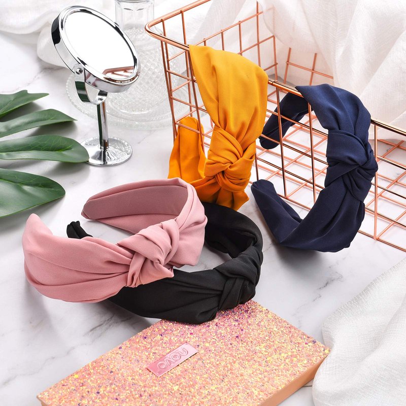 - What you receive: there are 4 pieces of wide knot hairbands in 4 colors, including black, yellow, pink and navy blue, enough quantity and classic solid colors are easy-matching with different hair colors and various hair styles, enough for your daily using and replacing