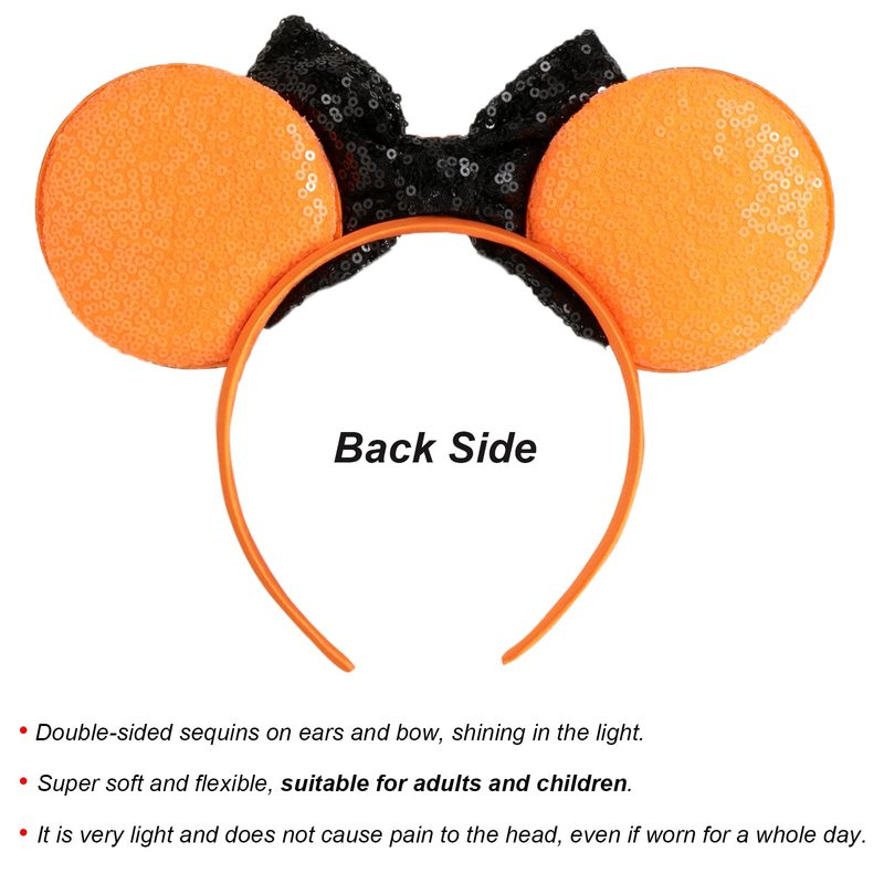 - Both sides of the ear & bow are covered by sequins, the sequins are woven by the fishing line, firm and will not fall.