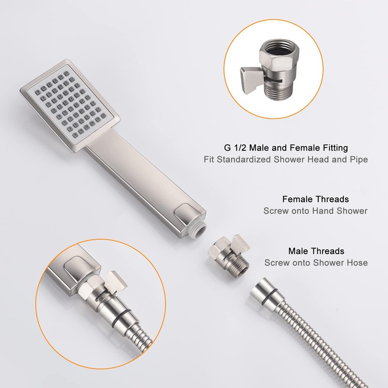 - Size: Both the male and female threads are G 1/2" IPS for standardized handheld shower, wall mount shower head or bidet sprayer, easy to install by hand or wrench.