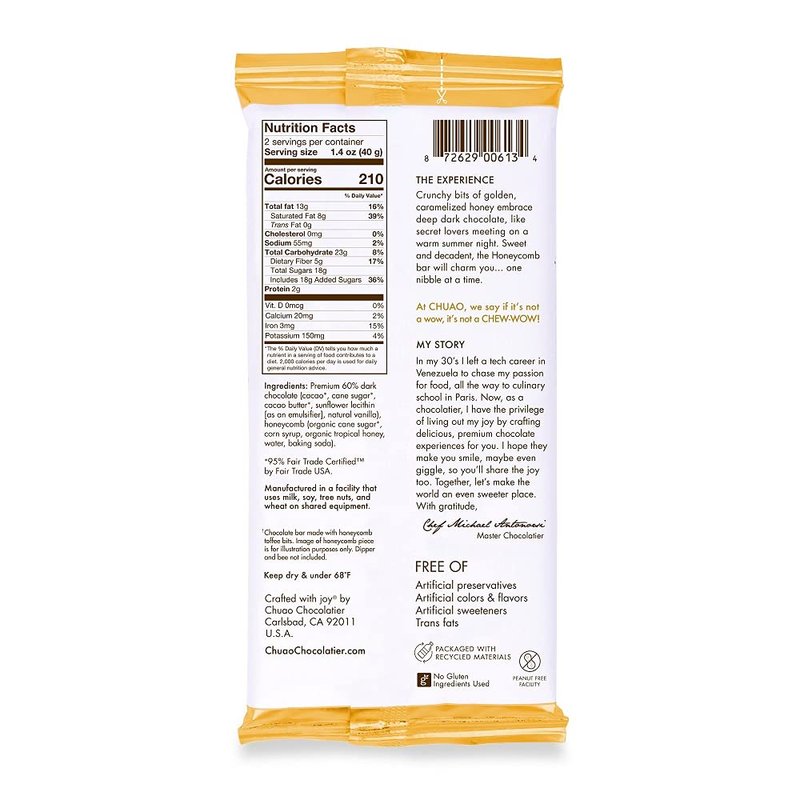 - HIT EVERY TASTE BUD: Luscious organic honey, caramelized into crisp bits and enrobed in dark chocolate. (3) 80 g/ 2.8 oz bar