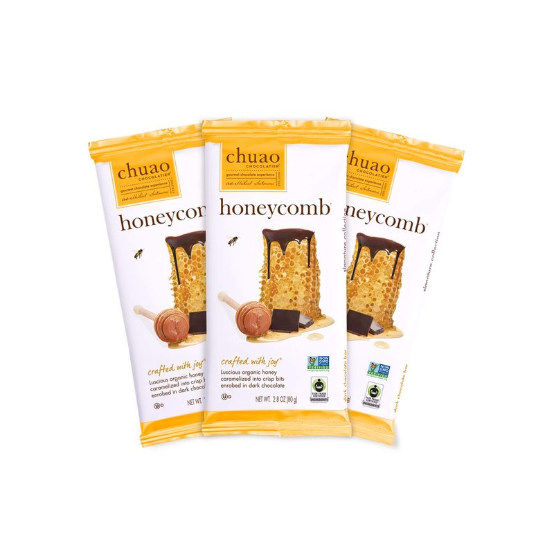 Chuao Chocolatier Honeycomb Dark Chocolate Bars | Gourmet Chocolate Honey Artisan European No Preservatives | For Gift Baskets, Christmas, Valentines Day, Gifts for Women, Men, Birthday, Thank You, Care Package | 3 Pack
