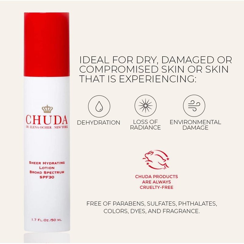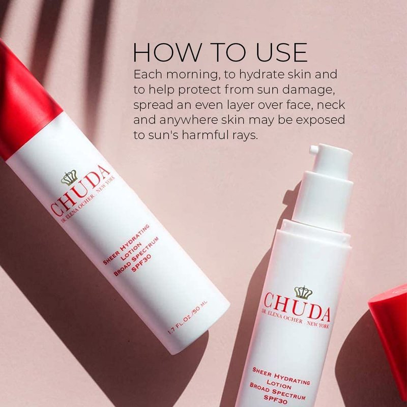 Chuda Sheer Hydrating Lotion Broad Spectrum Coverage SPF 30, 50ml Made in USA, Face Moisturizers with Remedea Compound, Light Cream Sunscreen for Sensitive Skin, Face Lotion Skin Care for Everyday Use