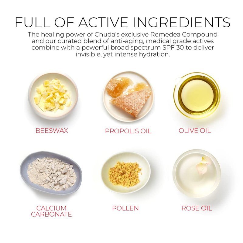 - EXCLUSIVE REMEDEA COMPOUND: Chuda centuries-old formula is enhanced with advanced skin-repairing ingredients for powerful hydration helping to repair skin damage caused by environmental factors. Clinically proven to improve radiance and texture, it works effectively on dry, sensitive, and aging skin. Perfect as a facial sunscreen that doubles as a skin treatment for deep, lasting hydration.