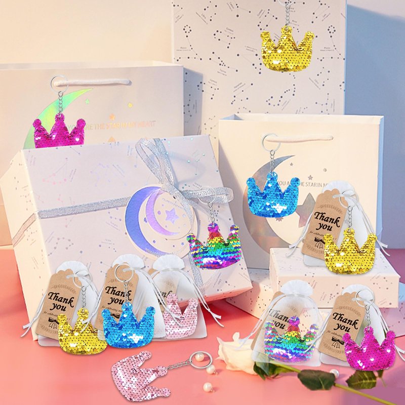 - 【What You Get】5 x Gold Crown Sequin Keychains; 5 x Pink Crown Sequin Keychains; 5 x Blue Crown Sequin Keychains; 5 x Rose Red Crown Sequin Keychains; 5 x Colorful Crown Sequin Keychains.Recommended Age Grade: above 12 years