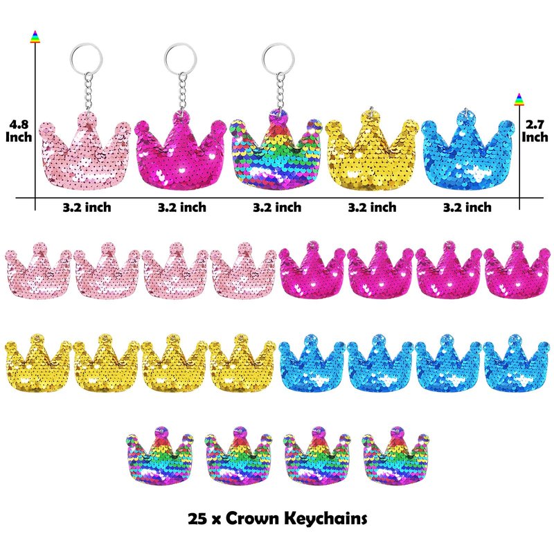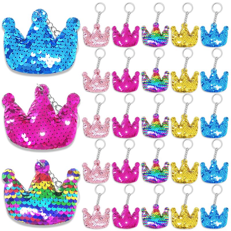 CiciBear 25 Pack Crown Sequin Keychains for Gold Themed Party Favors, Kids and Adults Birthday Gift, Baby Shower, Crown Princess Prince King Queen Party, 5 Colors