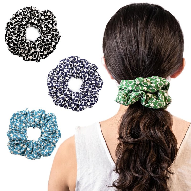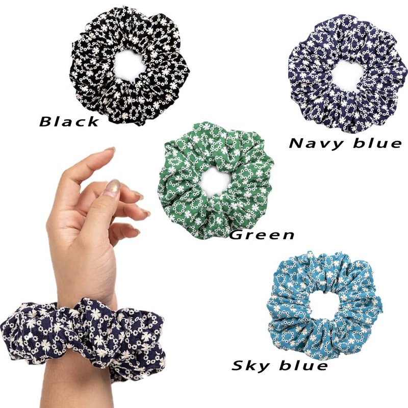 Introducing our delightful collection of 100% pure cotton scrunchies for girls and women who love to add a pop of color and style to their hair care routine! Our colorful scrunchies are not just fashionable but also gentle on your hair, making them the perfect hair accessories for women who prioritize both beauty and hair health. Crafted with care, each scrunchie in our bulk pack features a vibrant hue that's sure to catch everyone's attention. Choose from a range of colors, including sky blue, green, deep blue, and classic black, all adorned with delicate white daisy prints for an added touch of elegance. These printed scrunchies are designed to make a statement and elevate your everyday look. Whether you're looking for large scrunchies for women with voluminous hair or small scrunchies that are perfect for thin hair, we have you covered. Our scrunchie pack includes a variety of sizes to suit every hair type and style, ensuring a comfortable and secure fit without causing any damage. Say goodbye to hair ties that pull or break your hair and hello to our hair ties for curly hair that keep your curls looking bouncy and beautiful. These hair scrunchies for thick hair and thin hair are not just functional but also make for excellent gifts. Surprise your friends, family, or even yourself with this charming set of hair accessories for women that are as practical as they are pretty. Whether it's for a special occasion or just to add some fun to your daily routine, our scrunchies for women are the perfect choice. Elevate your hair care routine and embrace your unique beauty with our curly hair accessories for women. Our scrunchies bulk pack offers a convenient way to stock up on these versatile hair ties that are gentle, stylish, and suitable for all hair types. Don't miss out on this opportunity to add a dash of color and personality to your hair with our colorful scrunchies! Order now and experience the joy of styling your hair with our damage-free, fashionable scrunchies that are sure to become your new favorite hair accessories. Get ready to turn heads and make a statement with every flip of your hair!