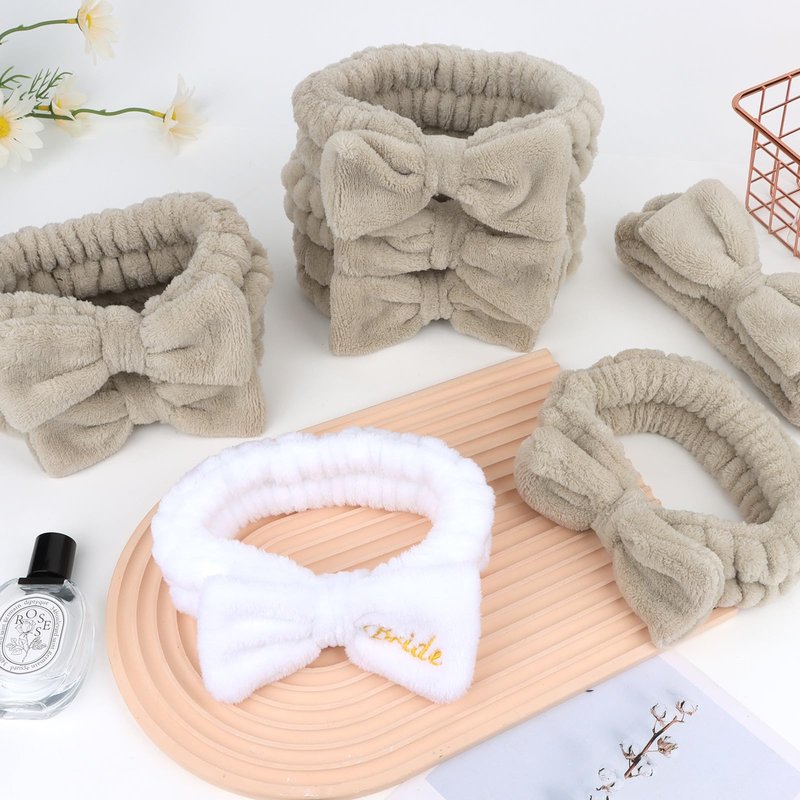 - 💗 The perfect bachelorette themed party favors: 1 white bridal spa headband +7 light coffee bridesmaid spa headbands.
