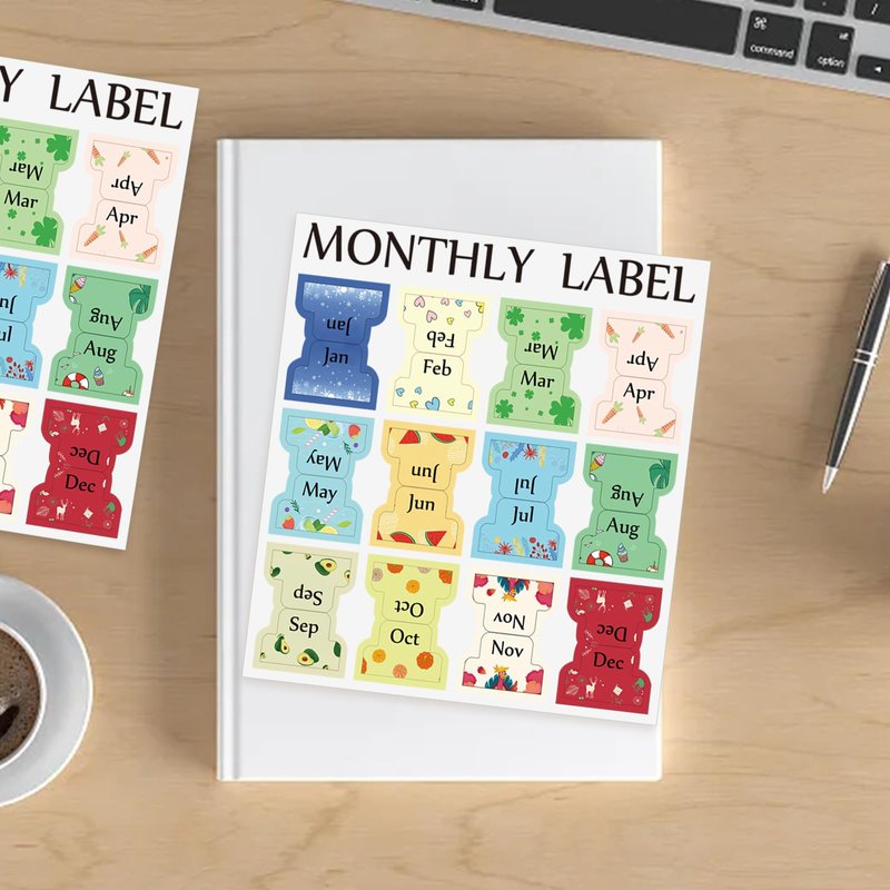 CIEMODA 2 Sheets Colorful Monthly Adhesive Tabs, 24 Pcs Monthly Divider Tabs, 1-12 Months per Sheet,Waterproof Month Tabs for Planner