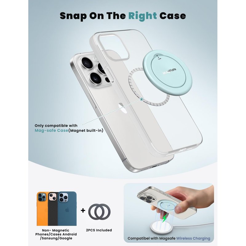 - đăMulti-FunctionăThis phone grip stand can be used as a mag-safe phone grip, desk top kickstand, Easy to operate the phone with one hand, as the rotatable centre, you can adjust reading angel as you want, hold the phone firmly and reduce the risk of accidentally dropping down.