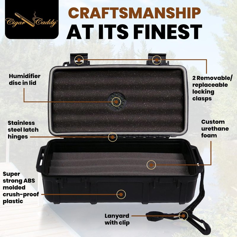 Cigar Caddy 3240 Travel Cigar Humidor, Holds 10 Cigars, Waterproof, Airtight Seal, Crush Proof, Coin Release for Air Pressure