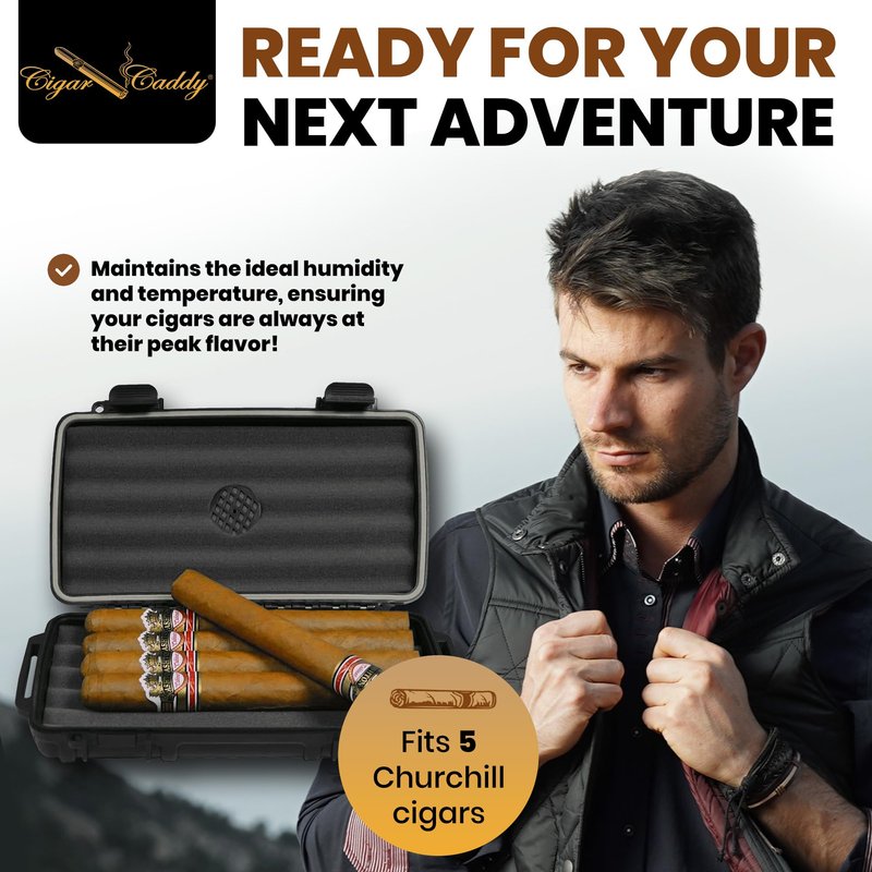 - Travel friendly: our cigar humidifier holds 5 Churchill cigars, with a coin release for air pressure adjustment. Lightweight and compact, it includes a lanyard and clip for easy portability in your luggage or backpack.