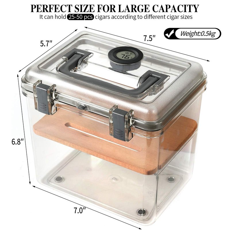Cigar Humidor Box/Case with Humidifier and Hygrometer and Spanish Cedar Planks,Can Hold About 30-50 cigars Acrylic Travel Cigar Humidor Top Cover Digital Hygrometer