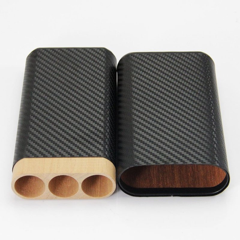 Cigar In Style Carbon Fiber Leather 3 Tube Wooden Cigar Case/Holder Travel Humidor