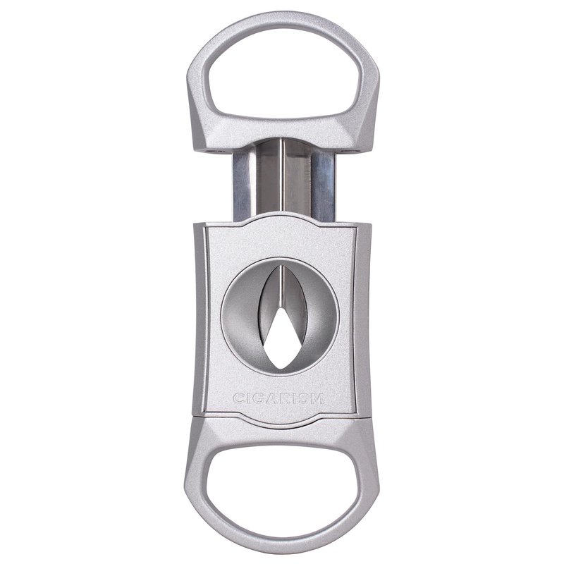 CIGARISM V-Cut Cigar Cutter Stainless Steel Blade, Up to 60+ Ring Gauge in Leather Gift Case (Silver)
