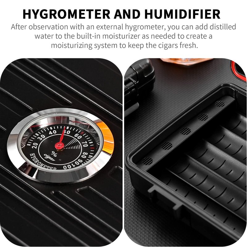 - DESIGN— External Hygrometer Can Sense Humidor Changes in the Cigar Box and Internal Shockproof Sponge is Avoid to Rocked Protection Cigars