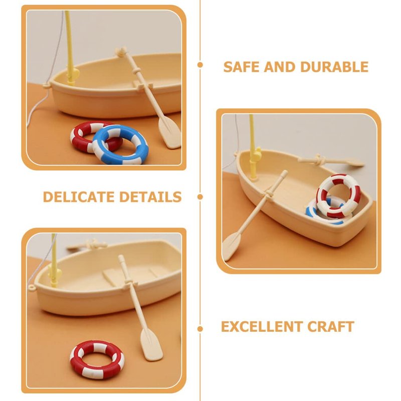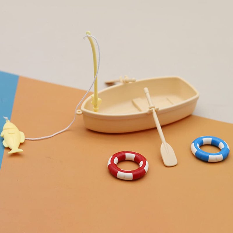 Ciieeo 1 Set of Miniature Boat Figure Plastic Fishing Boat Swimming Ring Chinese Style Boat Model Ocean Beach Fairy Garden Micro Landscape Dollhouse Ornament