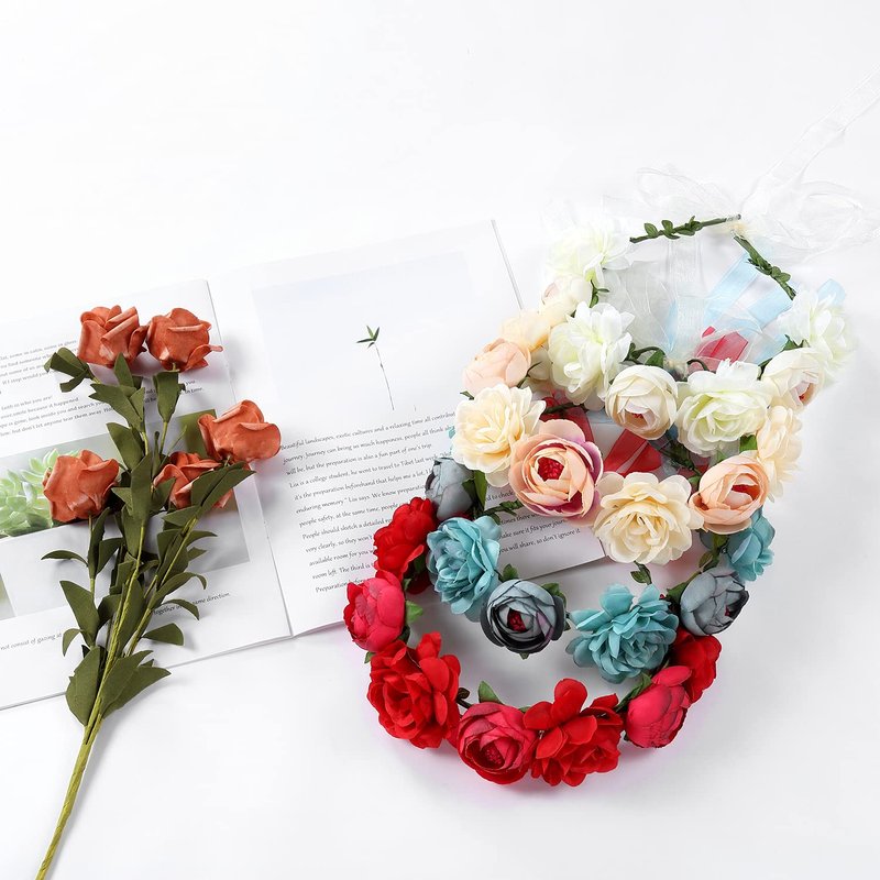 - 【DELICATE DESIGN】--All rose headbands are handcrafted in the clean pet-free and smoke-free environment. All flowers are very exquisite and bloomy like real flowers because of fine workmanship and excellent material. Flower design will never be out of fashion. Iron wire is wrapped by green fabric and leaves which ensure the safety of wearing. These Bohemian headbands will make women or girls more elegant and charming.