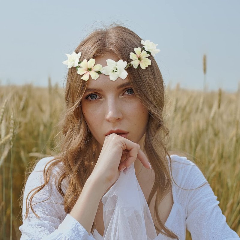 - 【ONE SIZE】--You can see the size of the flower wreath in the photo on the left, original circumference: approx 52cm/20", but they can fit for most women and girls because there is elastic band on the back to adjust the size. So there is no need to worry about size problem.