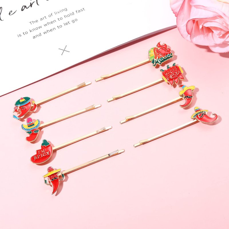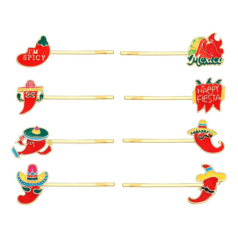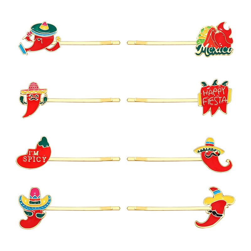 - 【Cute Cinco De Mayo Hair Pins】These Mexico fiesta hair pins so cute! Design with different style of chili pepper,pack of 8pcs enamel red chili hairpins,add some fun charming to your fiesta parade look!
