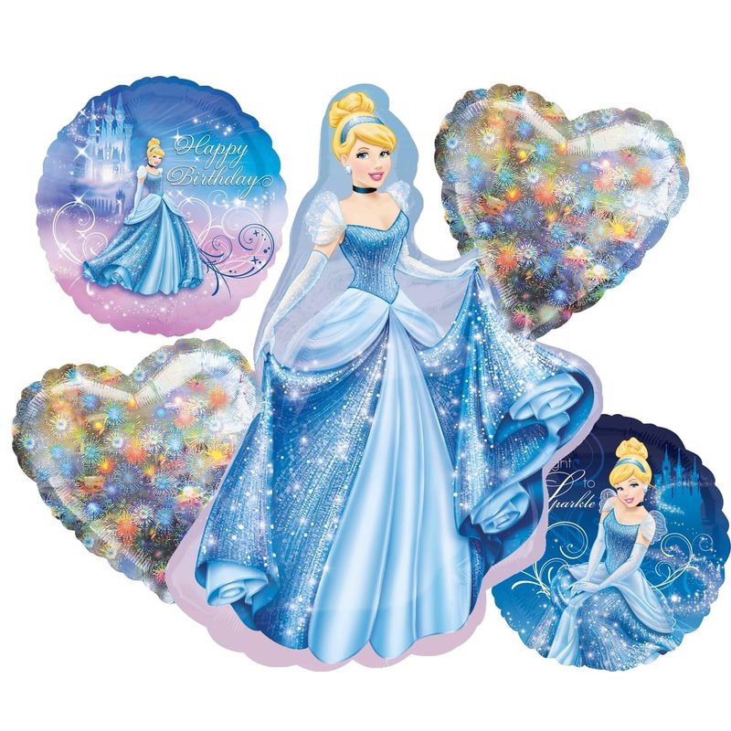 Cinderella Birthday Party 5pc Foil Balloons Bouquet Decorations