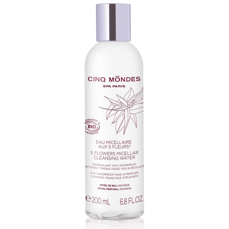 Cinq Mondes Five Flowers Micellar Cleansing Water 6.8 Fl.oz.- French-Crafted Organic Waterproof Eye Makeup Remover - Natural Balinese Flower Extracts - Cleanse And Tone The Skin
