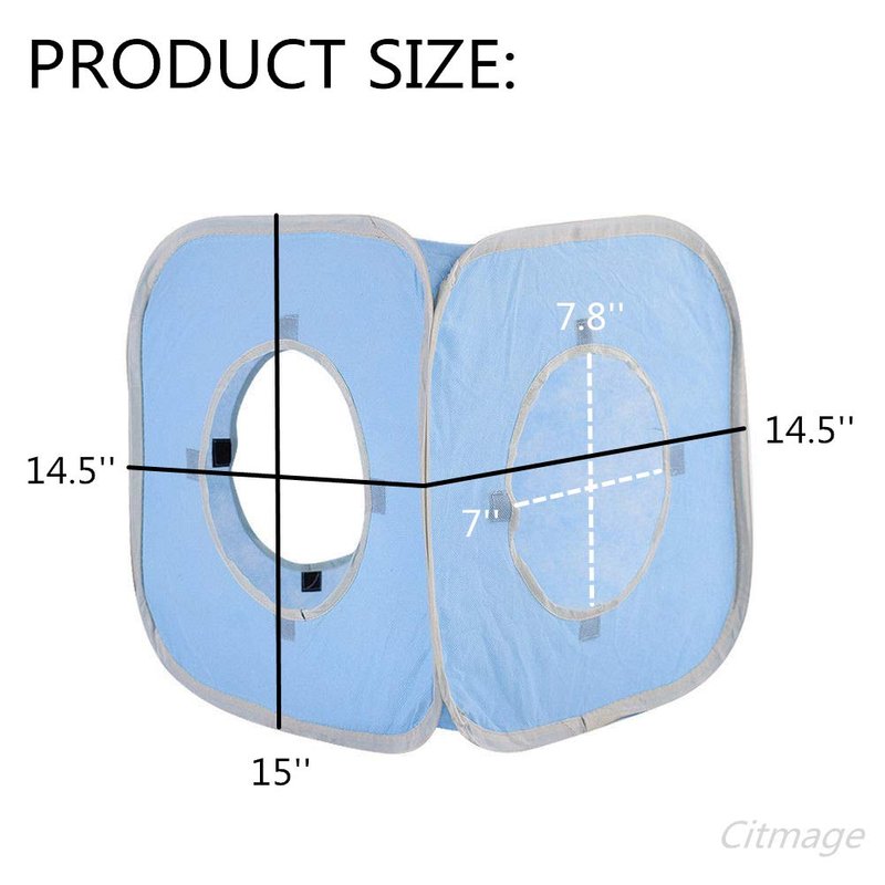 - [TOP QUALITY]:Made of high quality environment friendly non-woven fabric wrapped around a sprung-steel frame with protective ends,which is safe and durable.The size is approximately 14.5x14.5x15 inches.Three Peek Holes are approximately 7.8x7 inches. Enough for the cat to play inside.